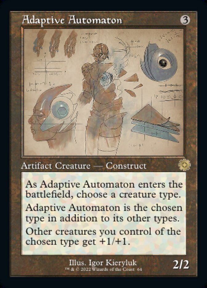 As Adaptive Automaton enters the battlefield, choose a creature type. Adaptive Automaton is the chosen type in addition to its other types. Other creatures you control of the chosen type get +1/+1.