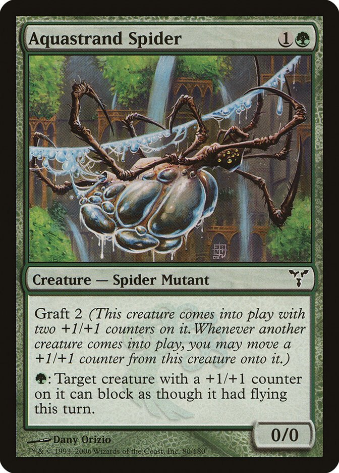Graft 2 (This creature enters the battlefield with two +1/+1 counters on it. Whenever another creature enters the battlefield, you may move a +1/+1 counter from this creature onto it.) {G}: Target creature with a +1/+1 counter on it gains reach until end of turn. (It can block creatures with flying.)