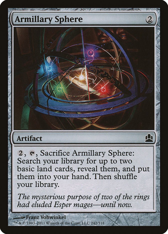 {2}, {T}, Sacrifice Armillary Sphere: Search your library for up to two basic land cards, reveal them, put them into your hand, then shuffle your library.