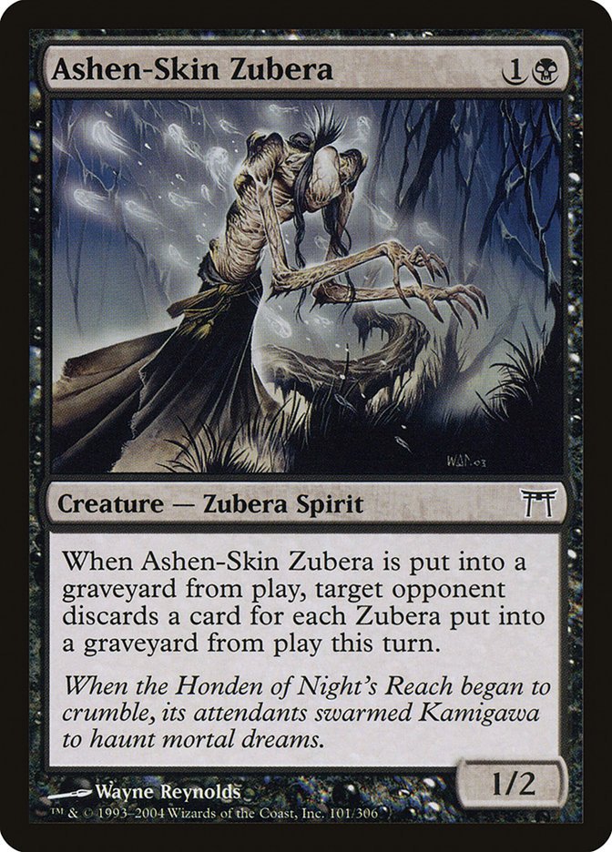 When Ashen-Skin Zubera dies, target opponent discards a card for each Zubera that died this turn.