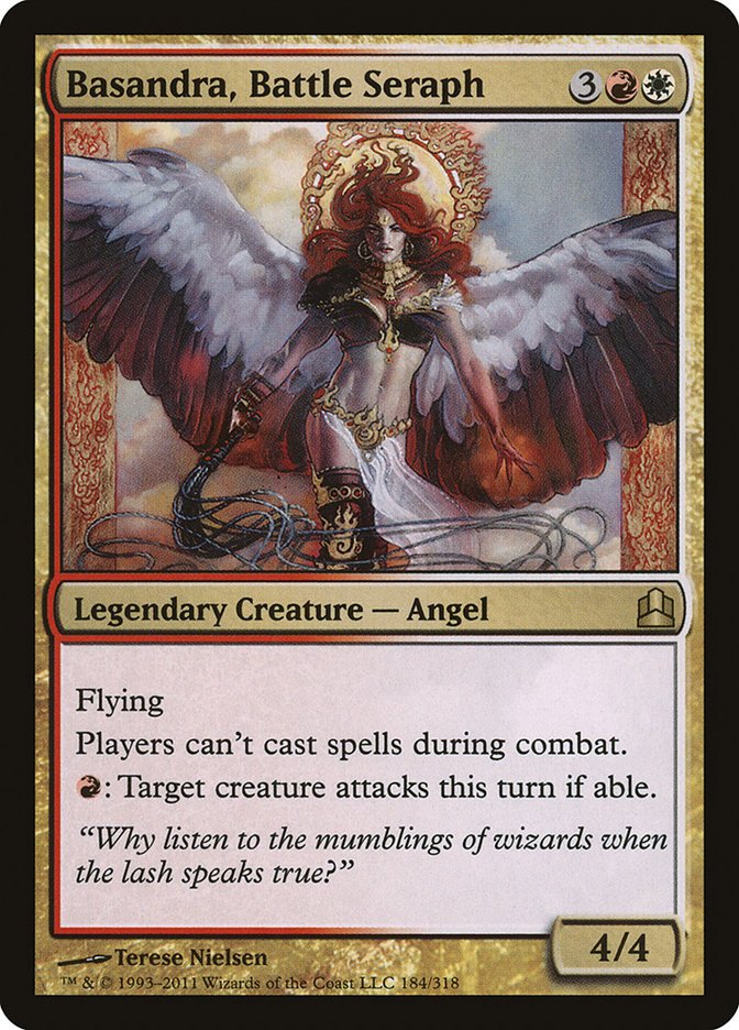 Flying Players can't cast spells during combat. {R}: Target creature attacks this turn if able.