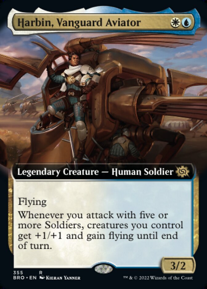 Flying Whenever you attack with five or more Soldiers, creatures you control get +1/+1 and gain flying until end of turn.