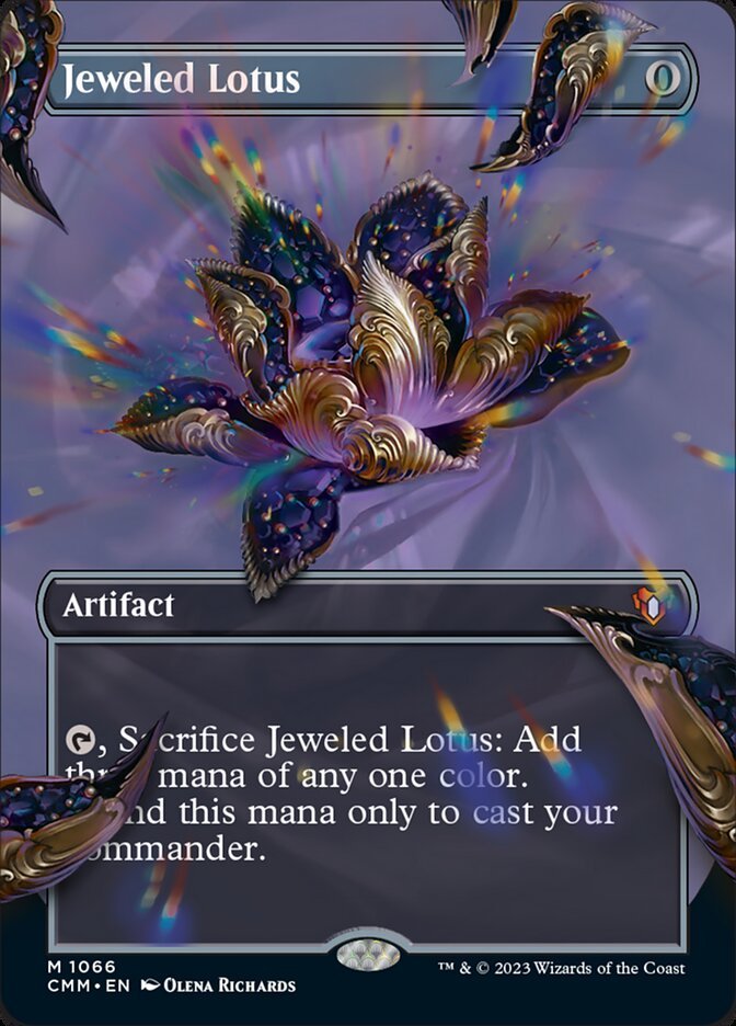 {T}, Sacrifice Jeweled Lotus: Add three mana of any one color. Spend this mana only to cast your commander.