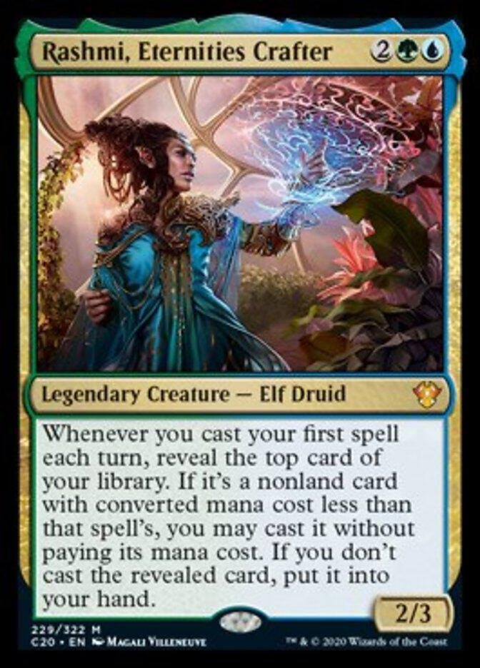 Whenever you cast your first spell each turn, reveal the top card of your library. You may cast it without paying its mana cost if it's a spell with lesser converted mana cost. If you don't cast it, put it into your hand.