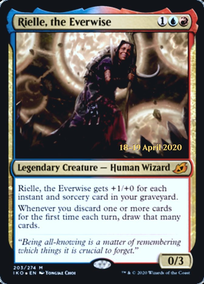 Rielle, the Everwise gets +1/+0 for each instant and sorcery card in your graveyard. Whenever you discard one or more cards for the first time each turn, draw that many cards.