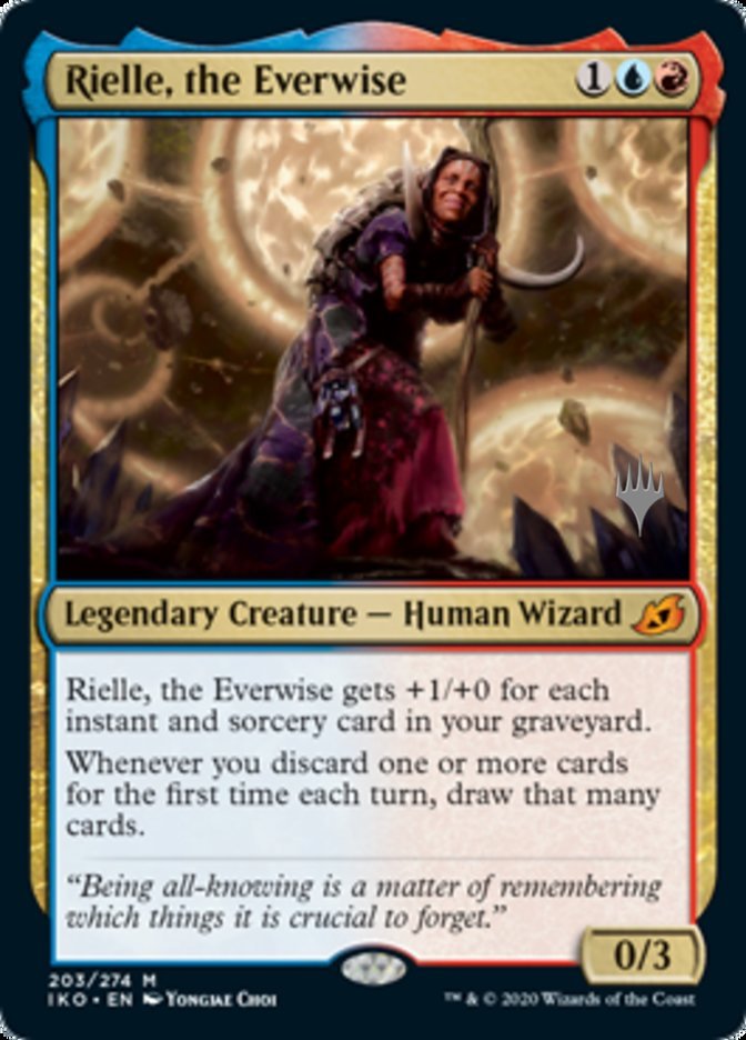 Rielle, the Everwise gets +1/+0 for each instant and sorcery card in your graveyard. Whenever you discard one or more cards for the first time each turn, draw that many cards.