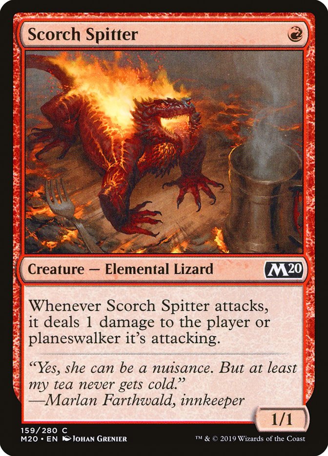 Whenever Scorch Spitter attacks, it deals 1 damage to the player or planeswalker it's attacking.
